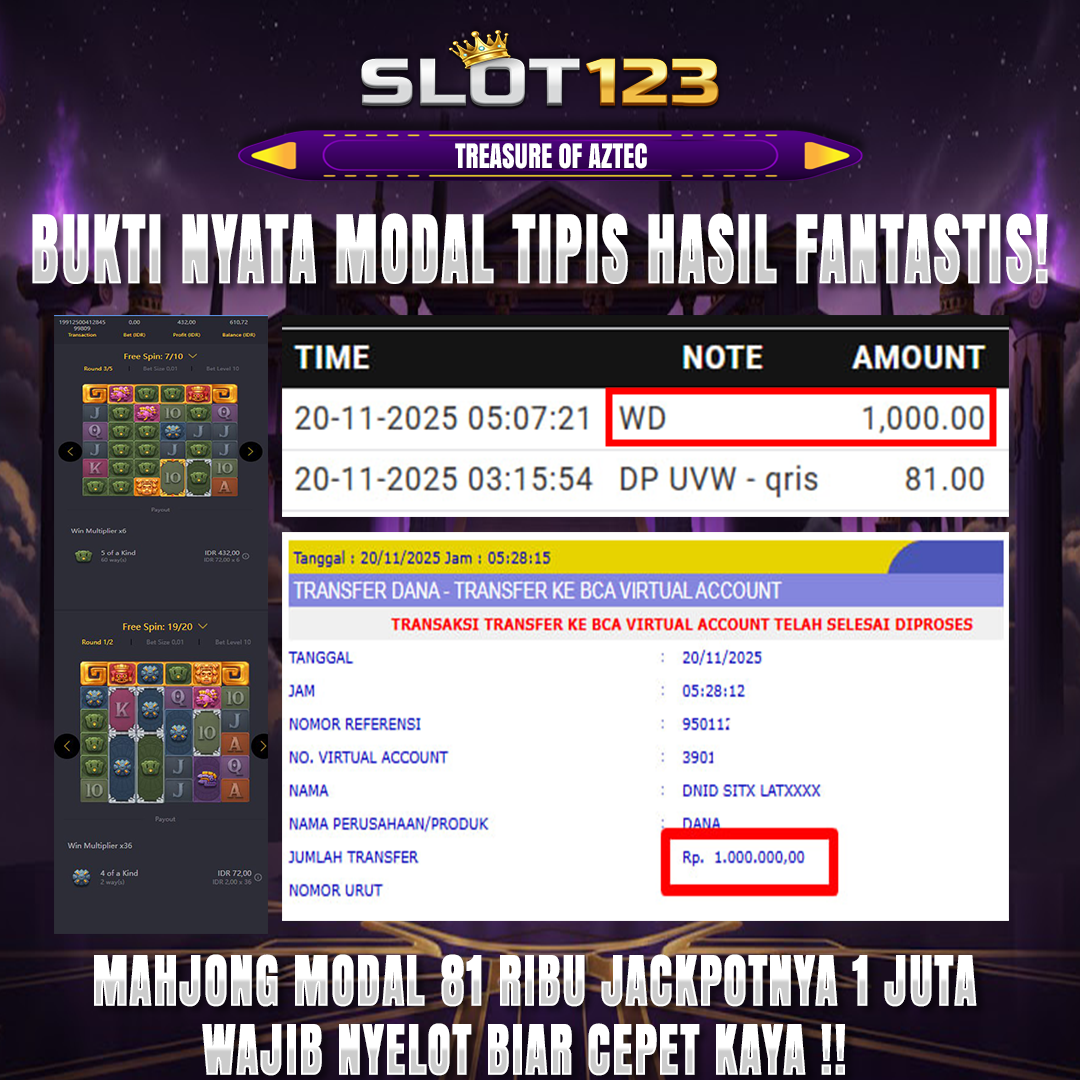 SLOT123 menghadirkan game jackpot vip yang di lengkapi fitur khusus new member hanya dengan modal deposit 81k dijamin akan withdraw 1 juta malam ini.